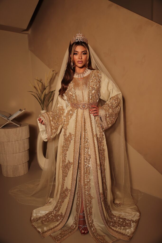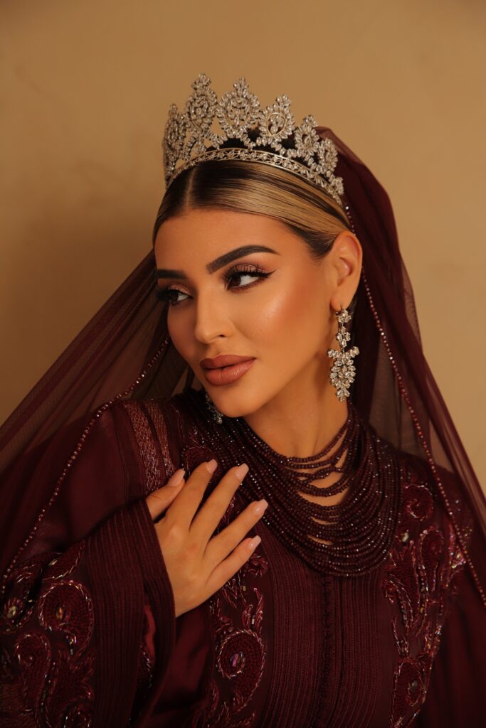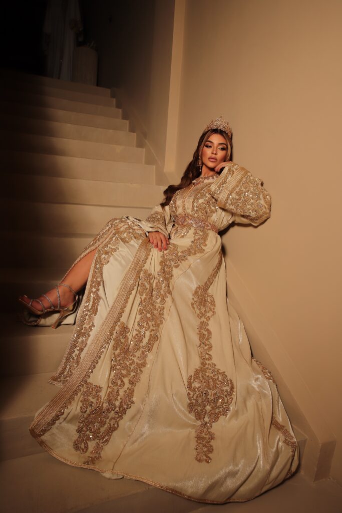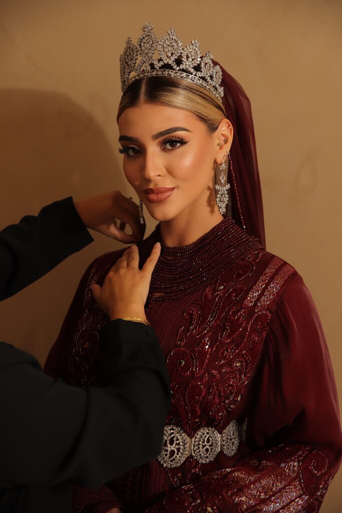Each bridal look is completed with exclusive jewelry, veils, and refined details. Fadoua personally provides styling on location, both nationally and internationally.